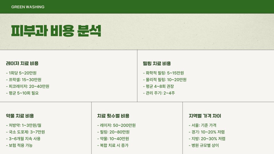 치료 비용이 저렴하다고 해서 무조건 좋은 치료 방법은 아닙니다. 치료 후 피부 상태를 충분히 검토하고 얻은 결과가 얼마나 지속되는지를 고려해야 합니다. 그렇기 때문에 피부과 선택 시, 그 병원의 전문성, 후기, 고객 서비스를 반드시 확인하는 것이 중요합니다. 이 정보를 바탕으로 합리적인 결정을 내리는 것이 좋습니다.