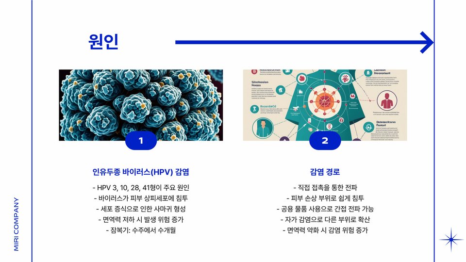 - 평편사마귀는 HPV 감염으로 발생