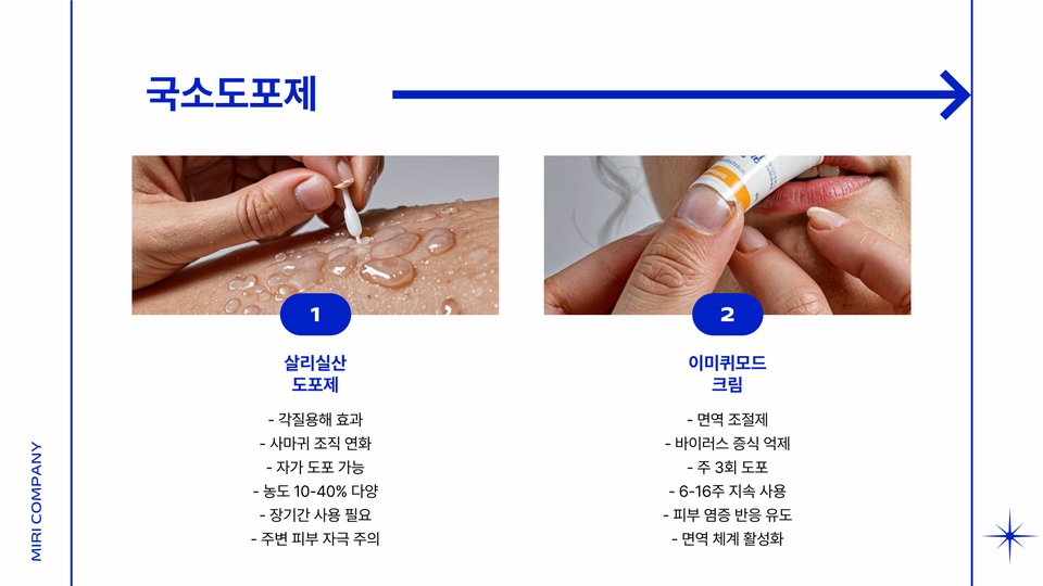 시장에는 여러 가지 유형의 평편사마귀 연고가 있습니다. 일반적으로 사용되는 연고로는 살리실산이 포함된 제품이 있습니다. 이 성분은 각질을 제거하고 사마귀를 부드럽게 만드는 데 탁월한 효능을 보여줍니다. 살리실산 연고는 주로 매일 저녁 사용하며, 꾸준히 사용할 경우 효과를 극대화할 수 있습니다.