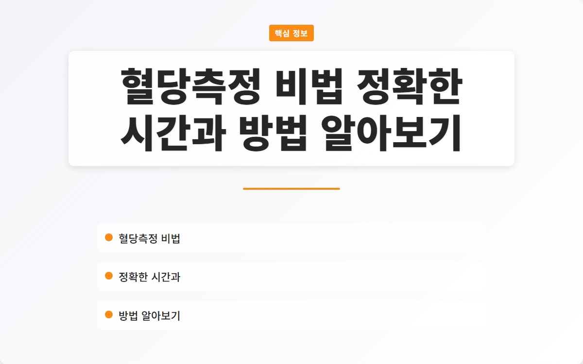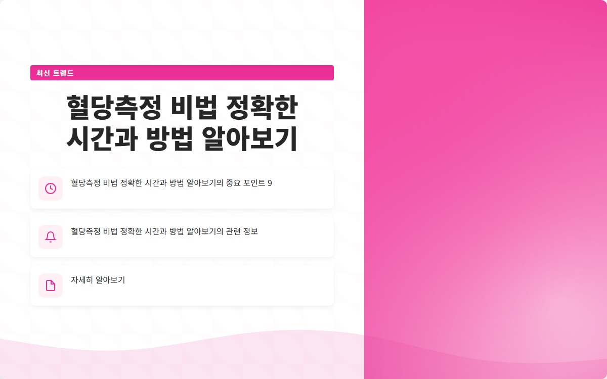 혈당측정은 당뇨 관리에 있어 매우 중요한 요소입니다. 정확한 혈당측정 비법을 알고 있다면, 건강한 생활을 유지하고 합병증을 예방하는 데 큰 도움이 됩니다. 이 글에서는 혈당측정의 정확한 시간과 방법에 대해 알아보겠습니다.